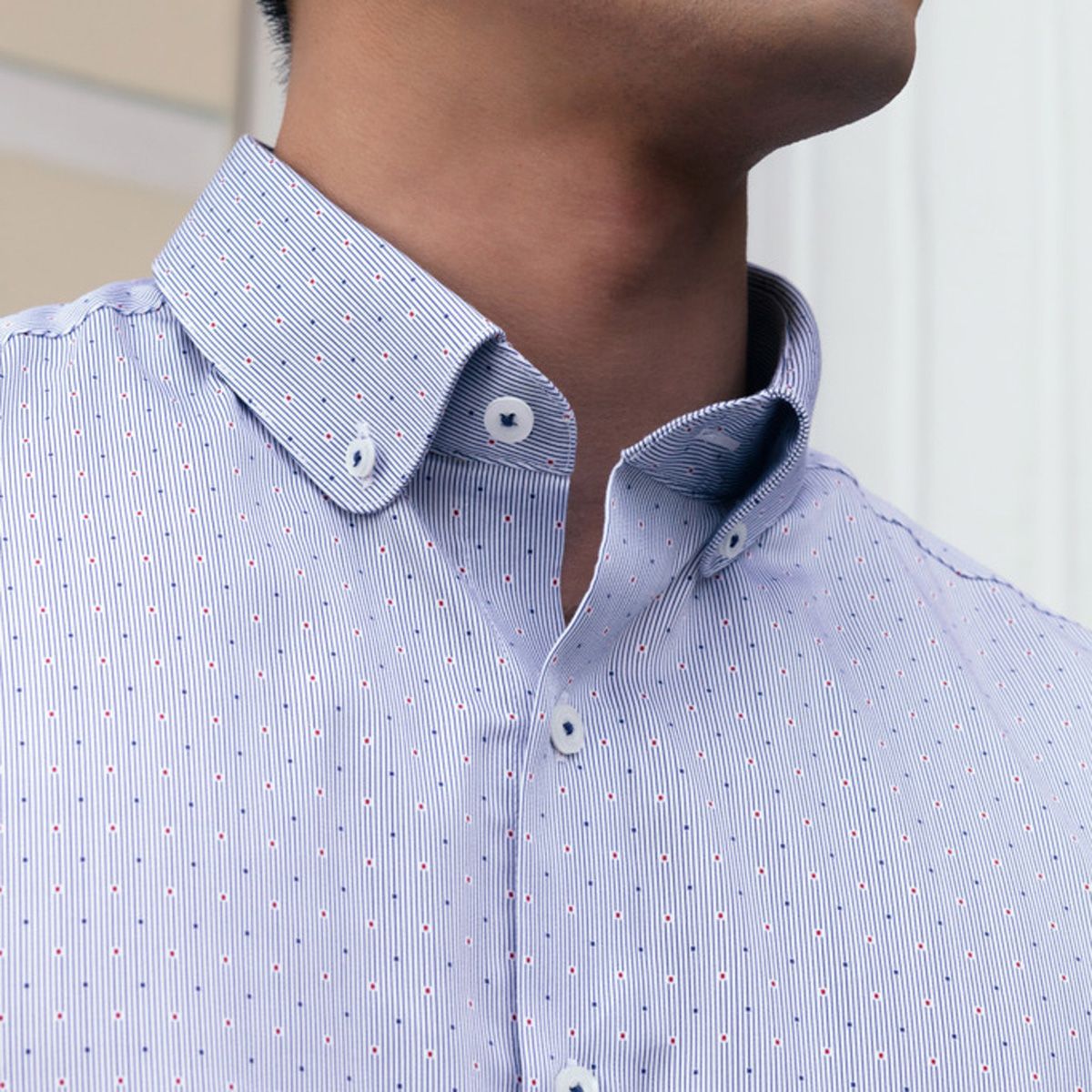 Áo Sơ Mi Nam GENTITI Tay Dài Họa Tiết Chấm Bi Màu Xanh - Kiểu dáng: Regular