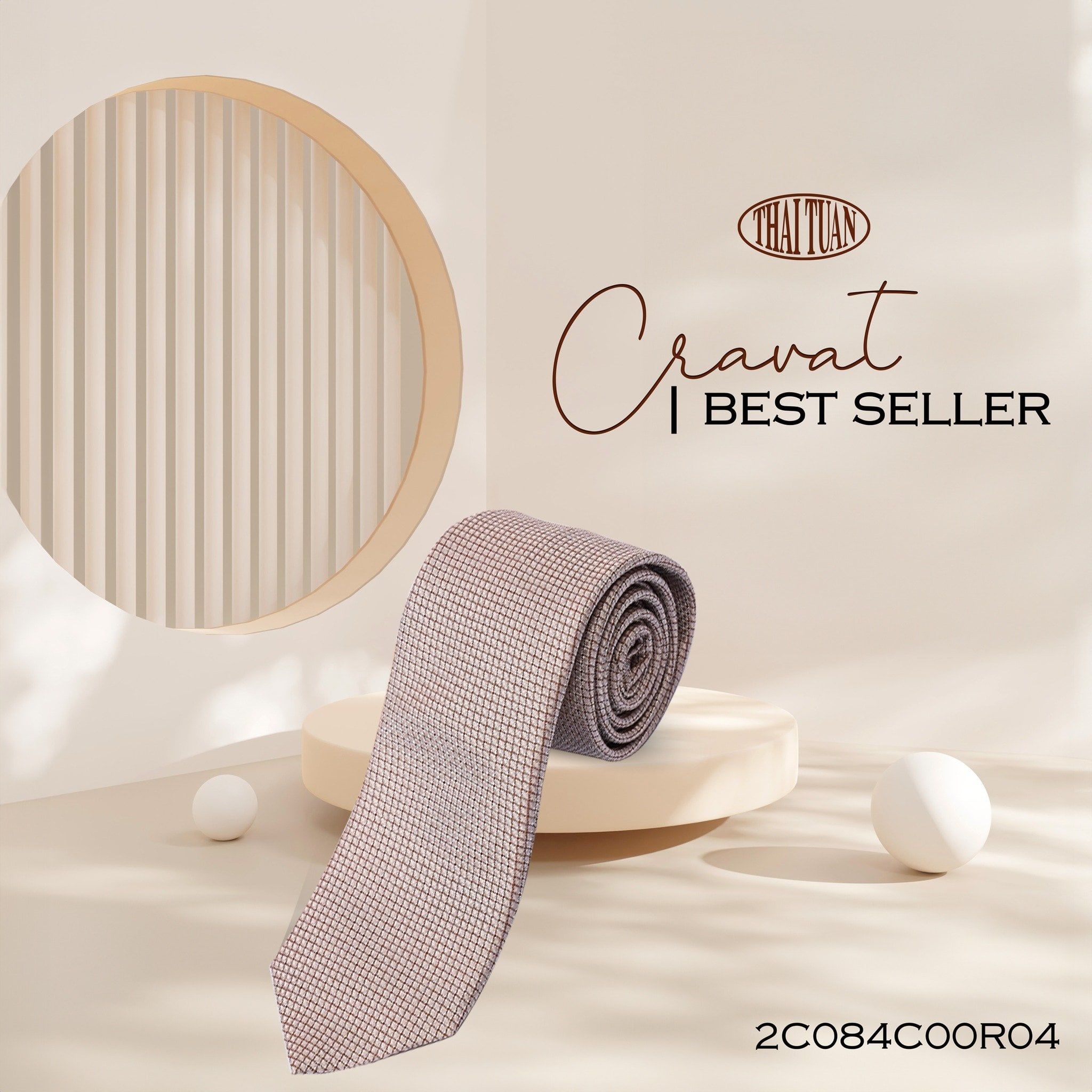 Cravat THÁI TUẤN Họa Tiết Kẻ Ô Nhỏ Màu Kem