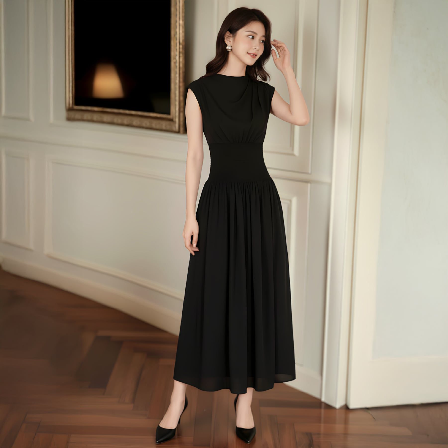 • Mẫu: Cổ sen, xếp ly eo.