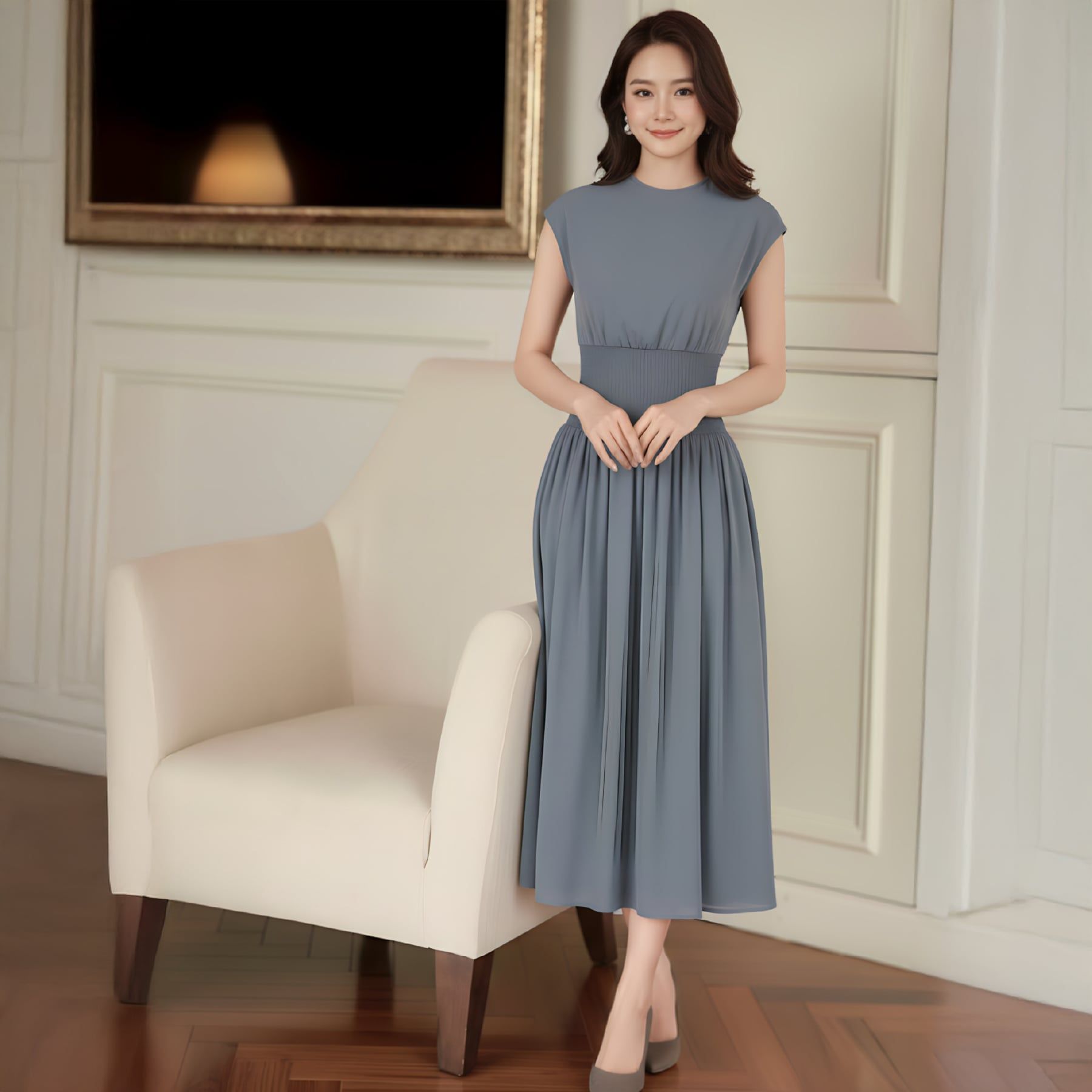 Đầm Nữ Thời Trang Công Sở Cổ Tròn Sát Dáng Xòe Sang Trọng 1M159