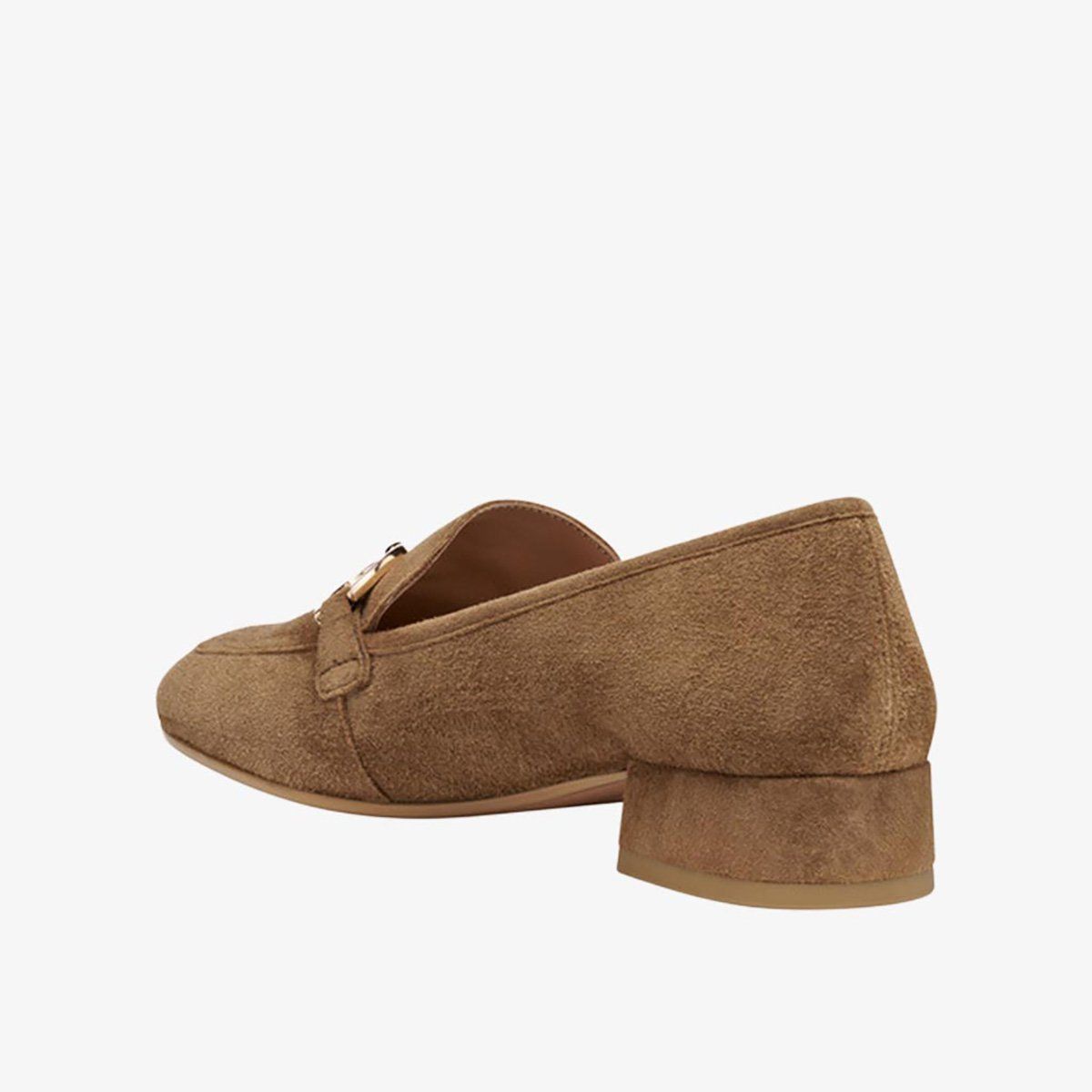 Giày loafer nữ mang diện mạo hiện đại với phom dáng thanh thoát, tôn lên phong cách đô thị bằng nét tinh tế đầy cuốn hút. Phiên bản này được chế tác từ da lộn mềm mại trong tông nâu đất sang trọng, dễ dàng phối hợp với mọi trang phục. Dhyalma là phụ kiện thanh lịch, đồng hành hoàn hảo cho những ngày dạo phố, đi làm hay cả những dịp cuối tuần thoải mái.