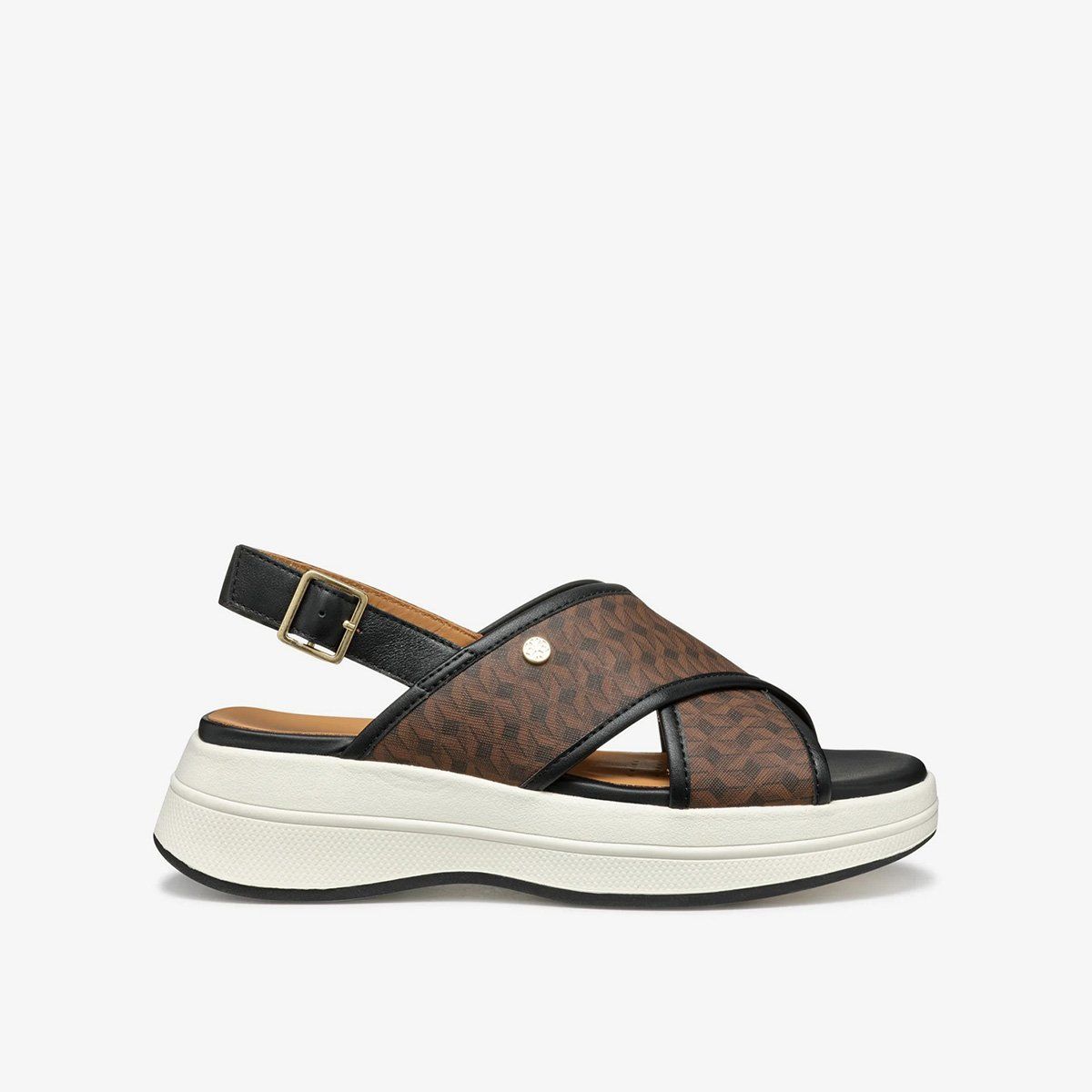 Geox Spherica ECUB-3 D550VB C6238 Dark Brown – Black là đôi sandal nữ mang vẻ đẹp thanh lịch, phối màu nâu đậm và đen đầy tinh tế, thiết kế gót đơn duyên dáng – lựa chọn lý tưởng cho những ngày hè năng động hay các buổi xuất hiện thường nhật. Phần quai đan chéo ôm chắc bàn chân, kết hợp đế giảm chấn tiên tiến giúp triệt tiêu rung chấn, mang lại cảm giác êm ái chưa từng có. Lót giày Ultra Comfort với lớp đệm liền mạch chạy dọc toàn bộ bàn chân, nâng niu từng bước di chuyển.