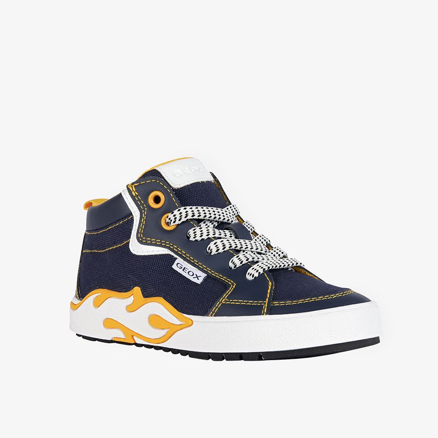 • Giày sneaker nhẹ nhàng, thoáng khí dành cho bé trai với kiểu dáng hiện đại, mang phong cách thể thao. Được thiết kế bằng tông màu xanh nước biển và vàng hấp dẫn, Alphabeet tự hào với chi tiết trang trí đẹp mắt và mạnh mẽ ở bên cạnh đế ngoài. Giày được chế tác từ vải canvas và da, sẽ làm nổi bật vẻ ngoài, phù hợp với việc đi học hay phong cách ăn, đi chơi.