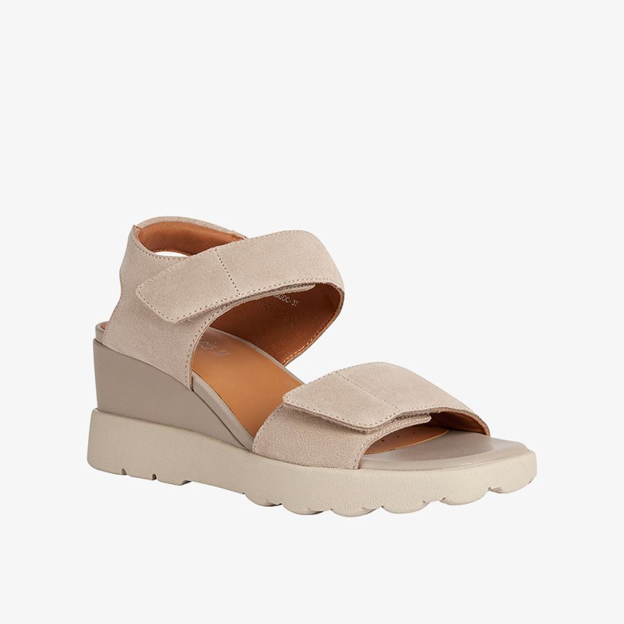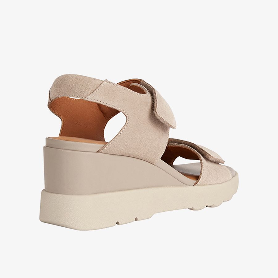 • Giày sandals có trọng lượng nhẹ, cực kỳ thoải mái dành cho nữ, có chiều cao vừa, thiết kế theo tông màu be da lộn hiện đại và cá tính theo phong cách thành thị. Quai giày được dán dính bằng dây đai riptape. Nằm trên đế ngoài đệm, Spherica™ EC6 nâng niu bàn chân với cảm giác mềm mại thoáng mát vượt trội và cũng là giải pháp hoàn hảo cho thời tiết nóng bức.