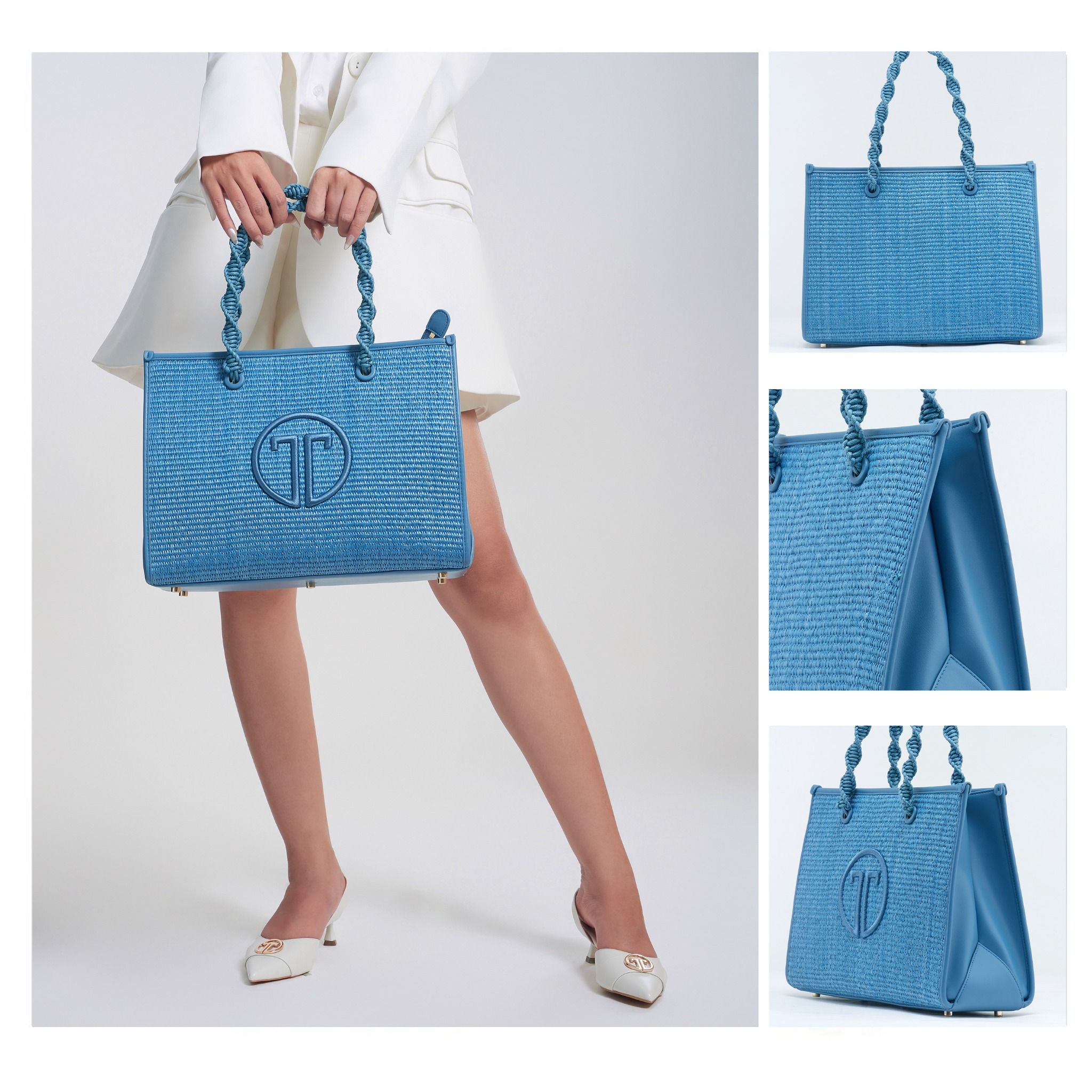 Túi Xách Tay Nữ THÁI TUẤN Thời Trang Thêu Nổi Màu Xanh
