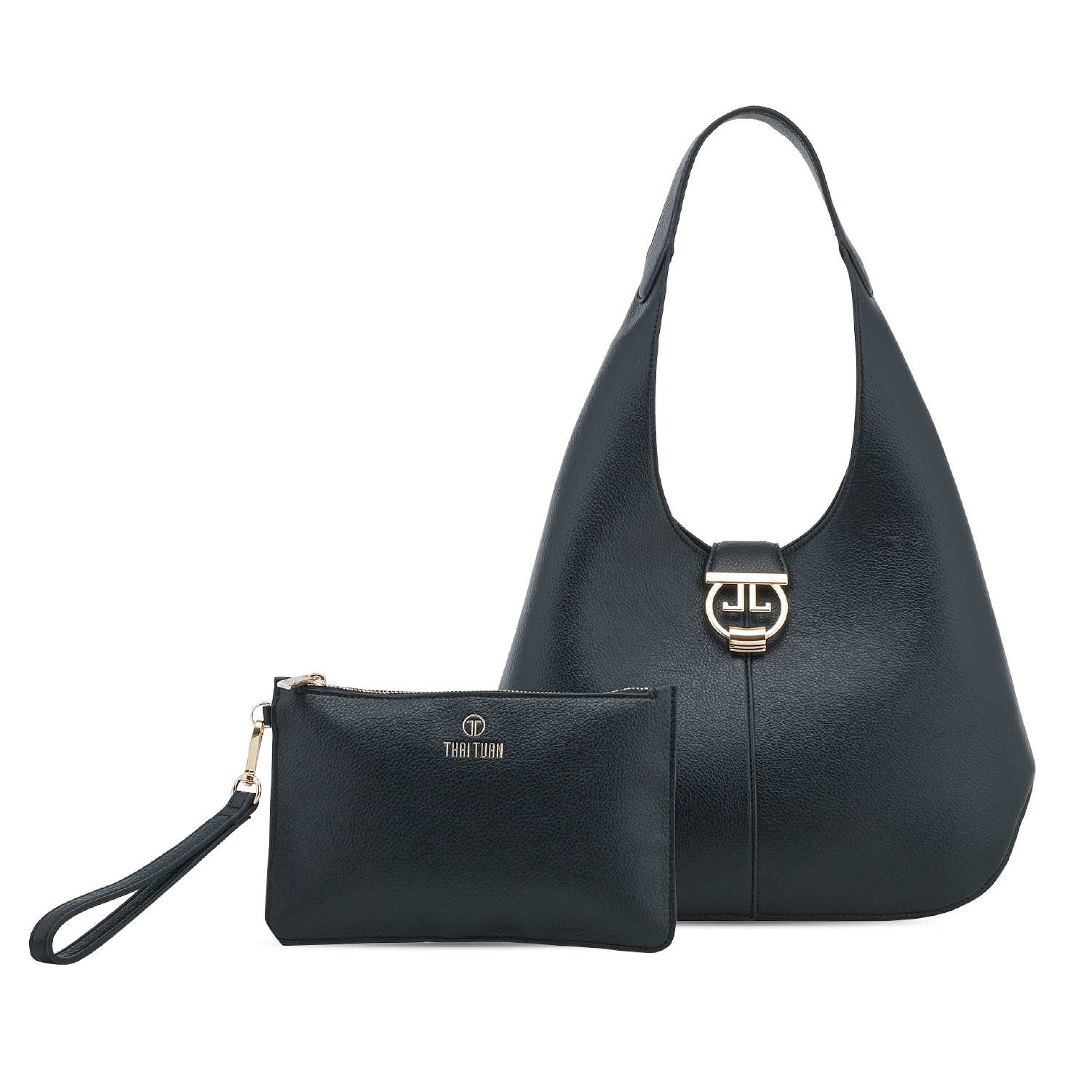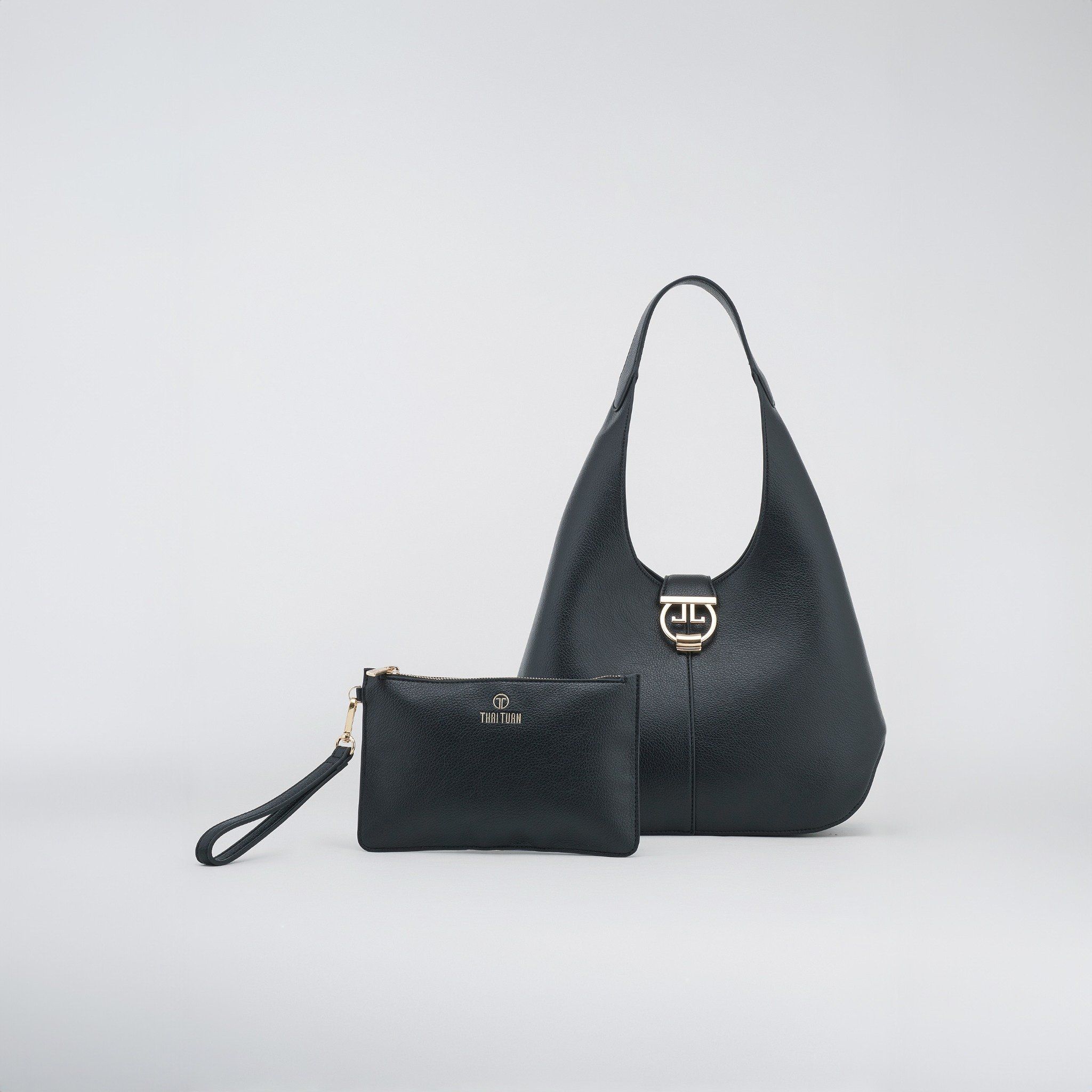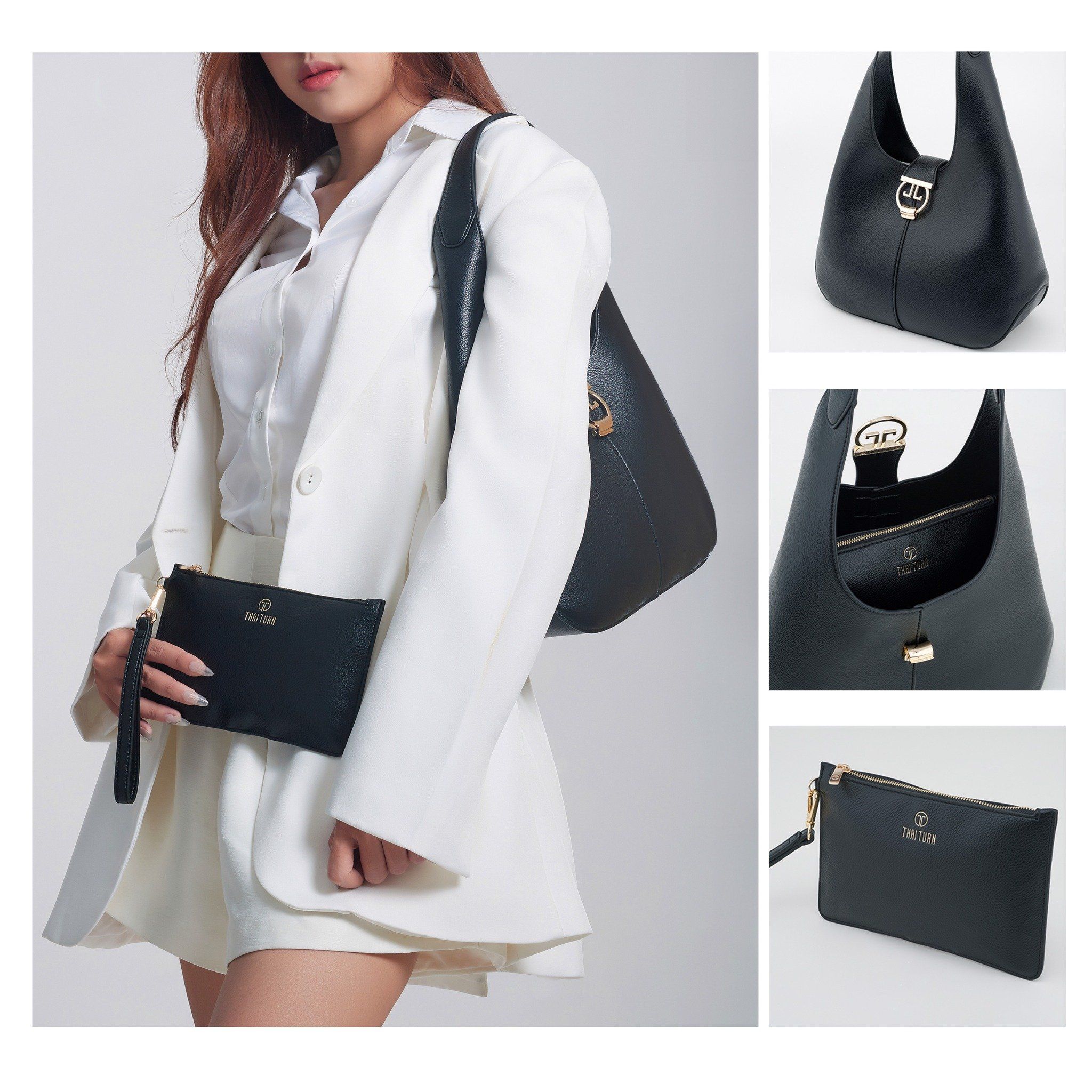 Túi Xách Tay Nữ THÁI TUẤN Hobo Khóa Gài Cách Điệu Màu Đen