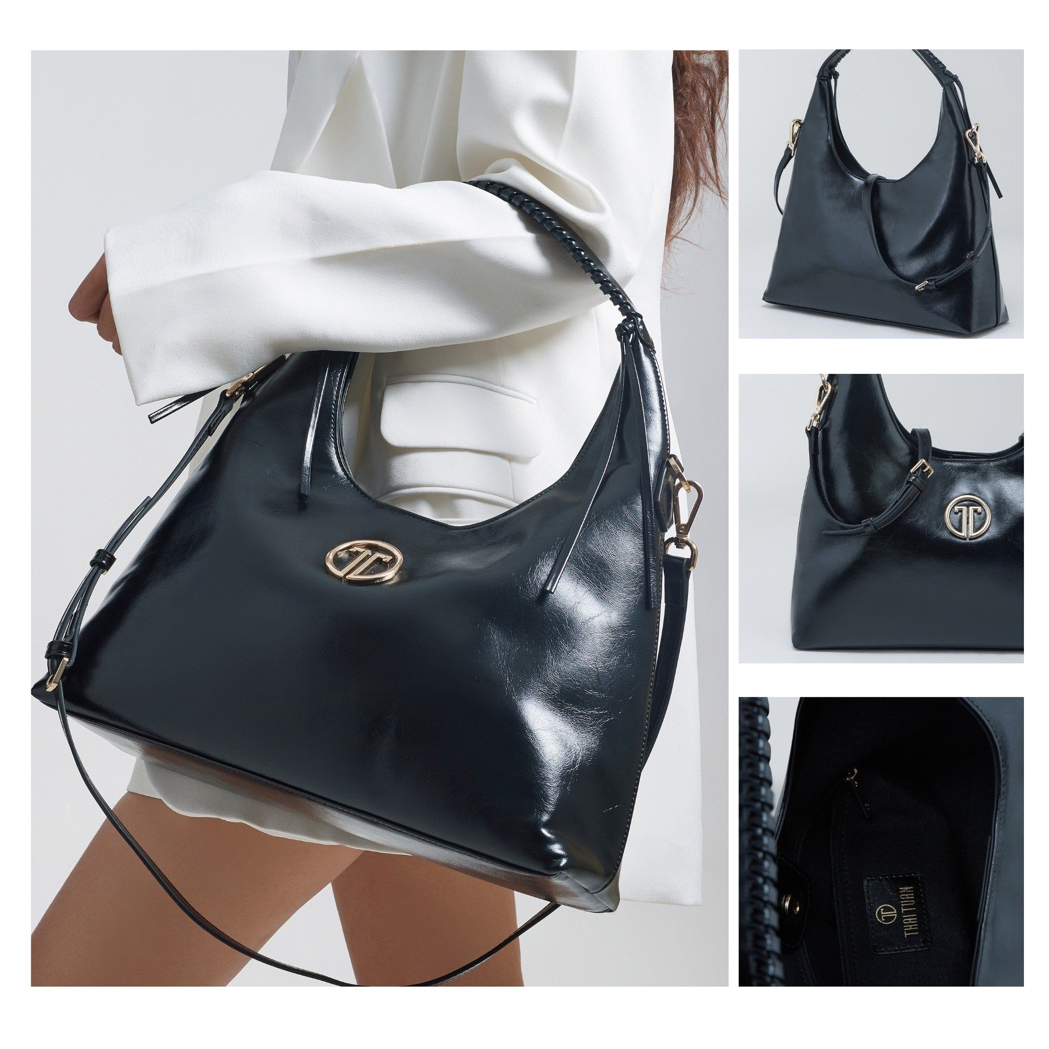 Túi Xách Tay Nữ THÁI TUẤN Hobo Khóa Kéo Màu Đen