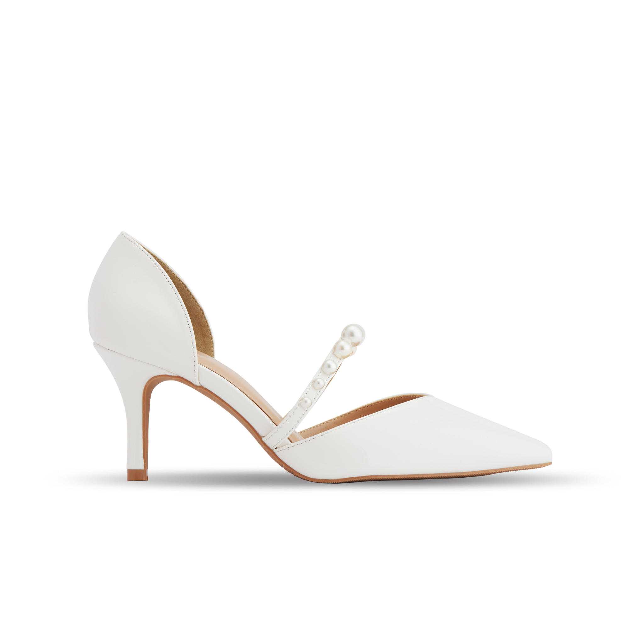 Giày Bít Cao Gót Nữ THÁI TUẤN Mũi Nhọn Slingback Màu Trắng