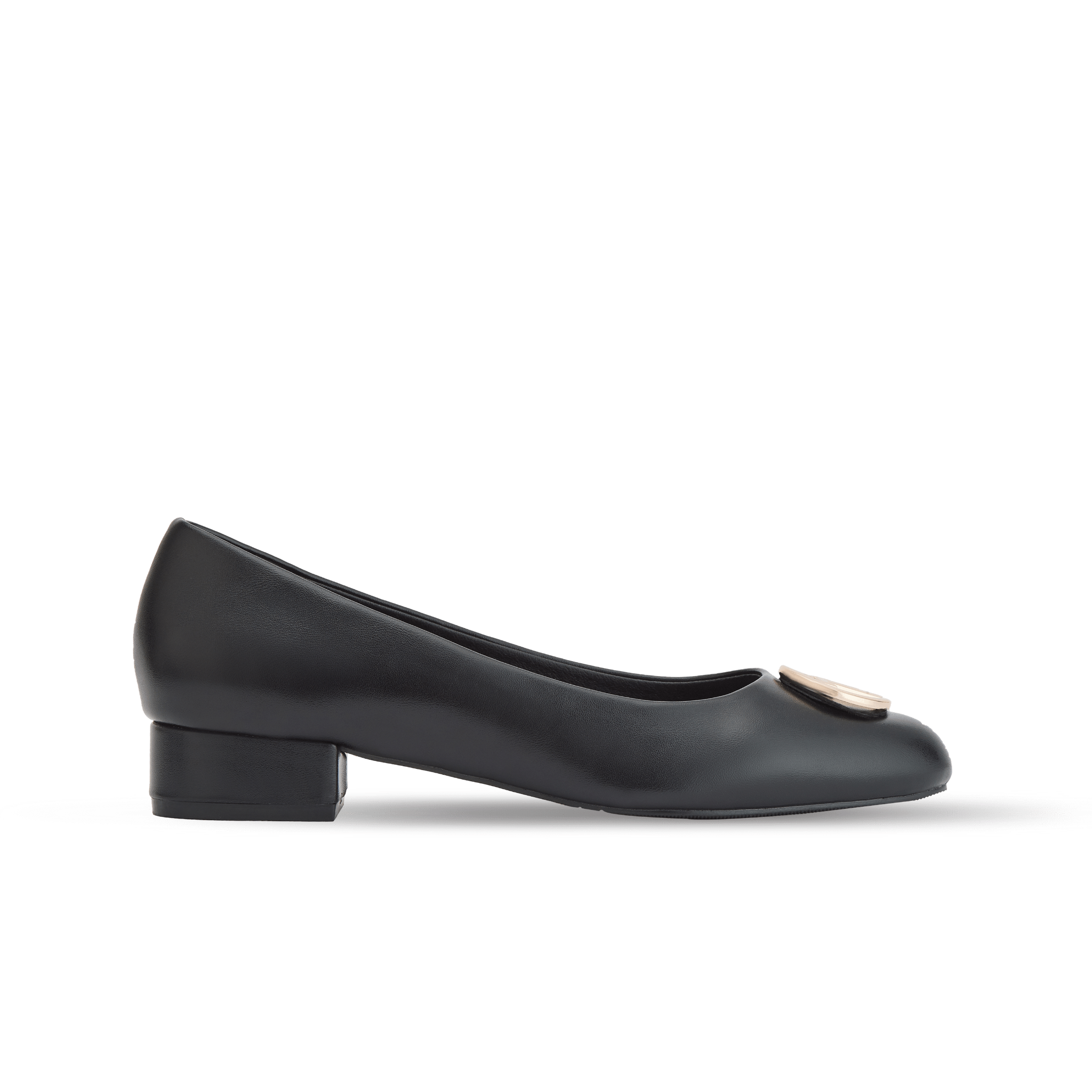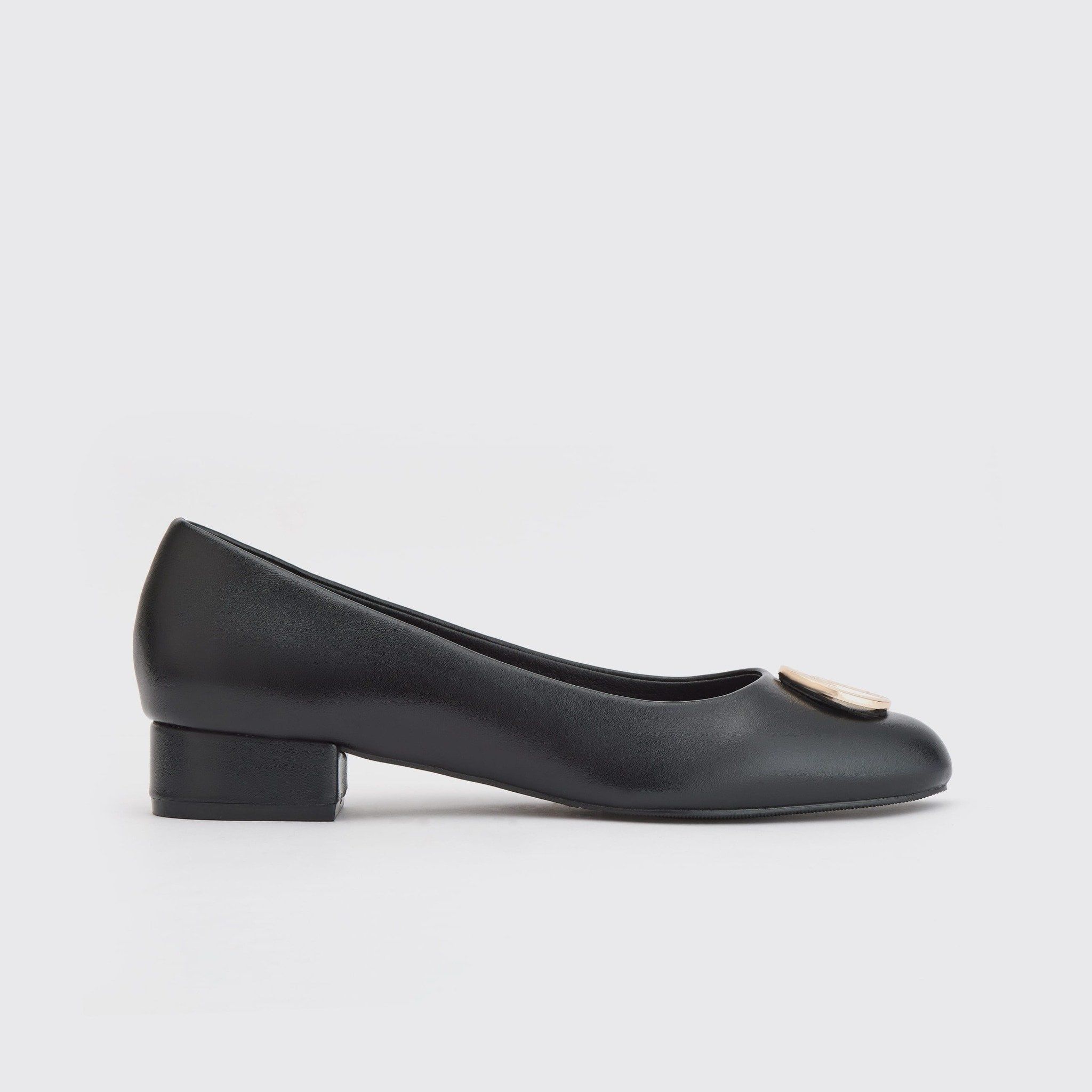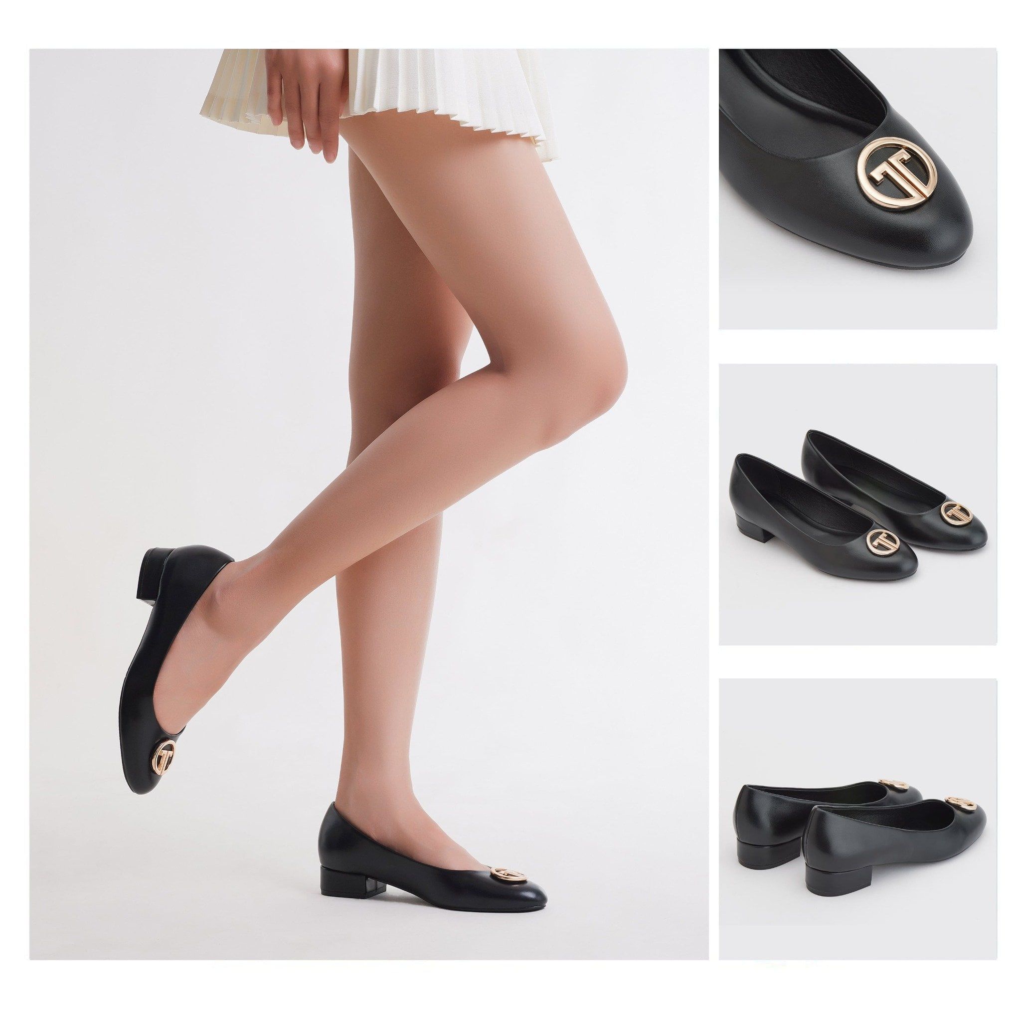 Giày Búp Bê Nữ THÁI TUẤN Mũi Bầu Phối Logo Trang Trí Màu Đen