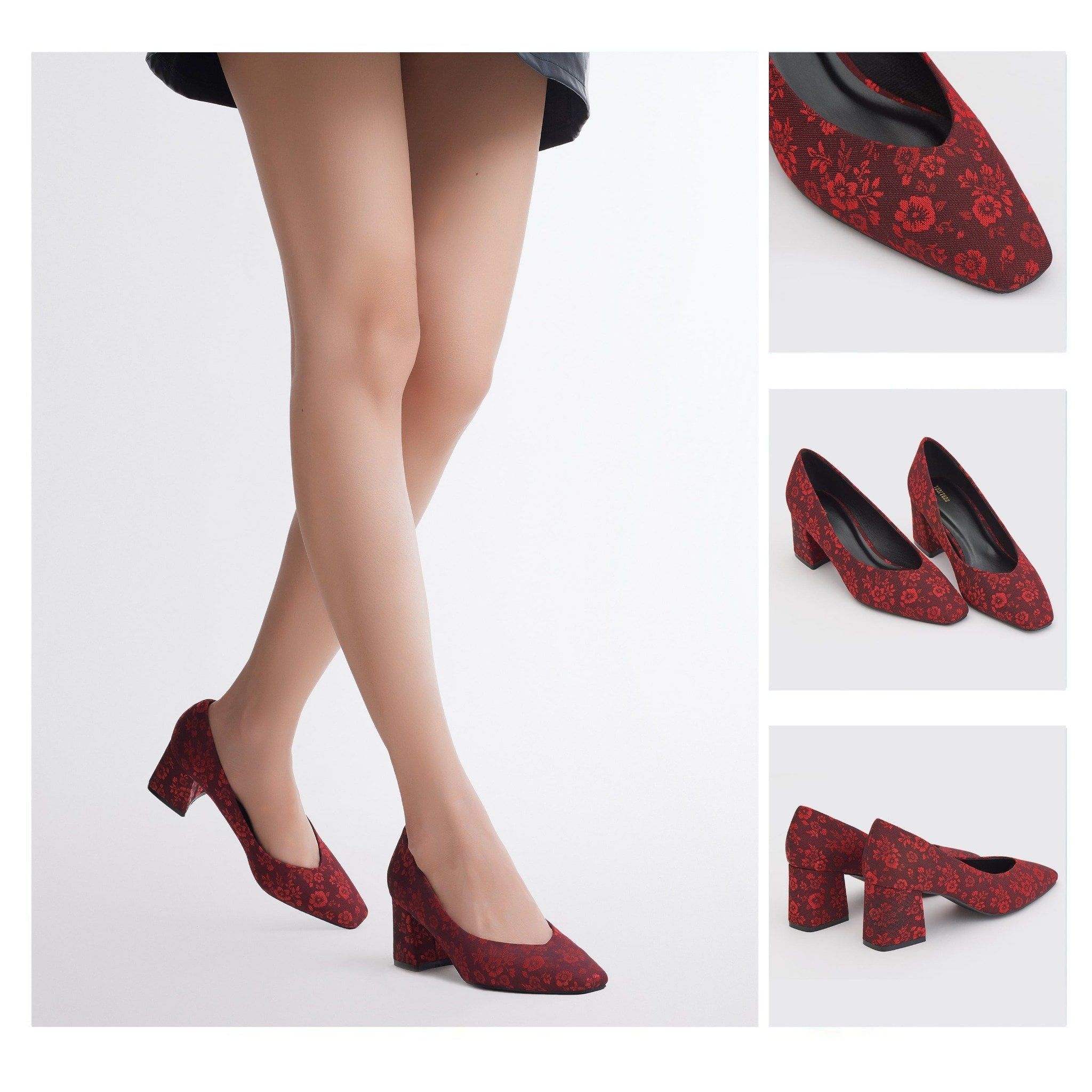 Giày Cao Gót Nữ THÁI TUẤN Bít Mũi Bầu Màu Đỏ Đen