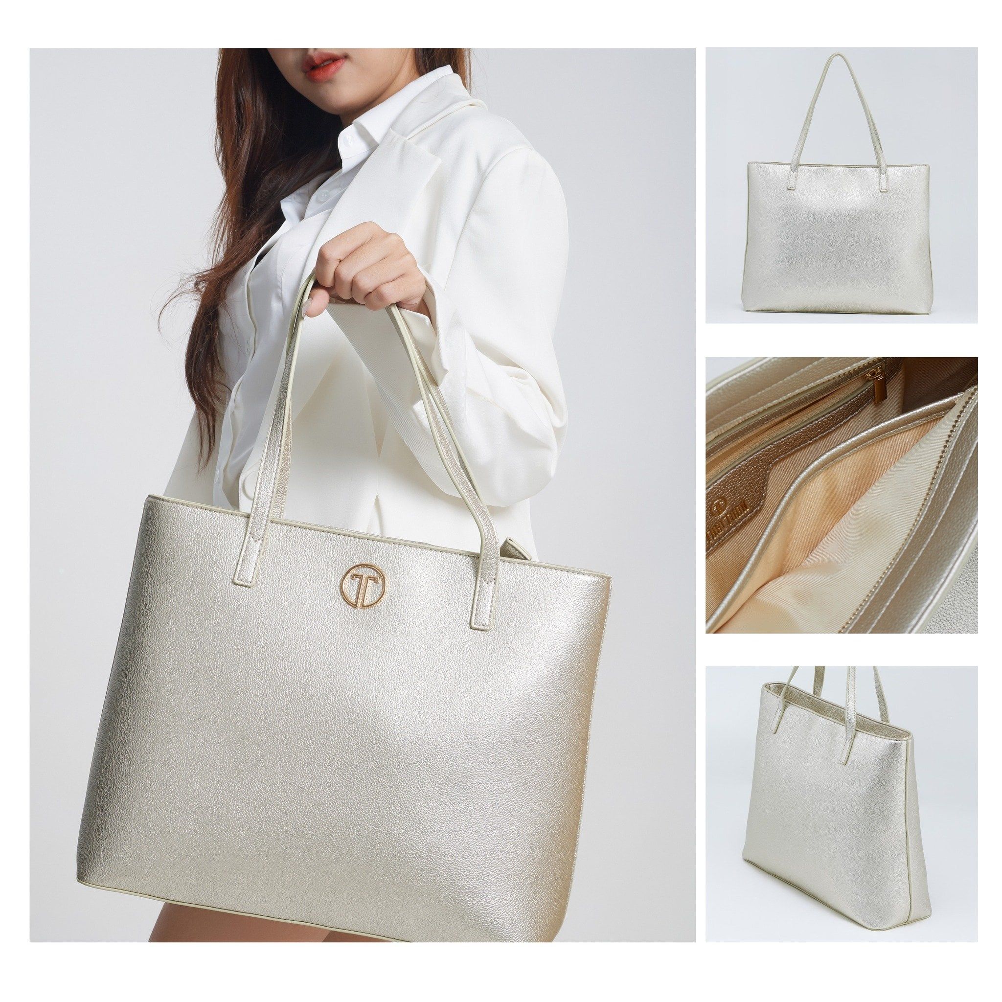 Túi Xách Tay Nữ THÁI TUẤN Lớn Thời Trang Màu Trắng Bạc